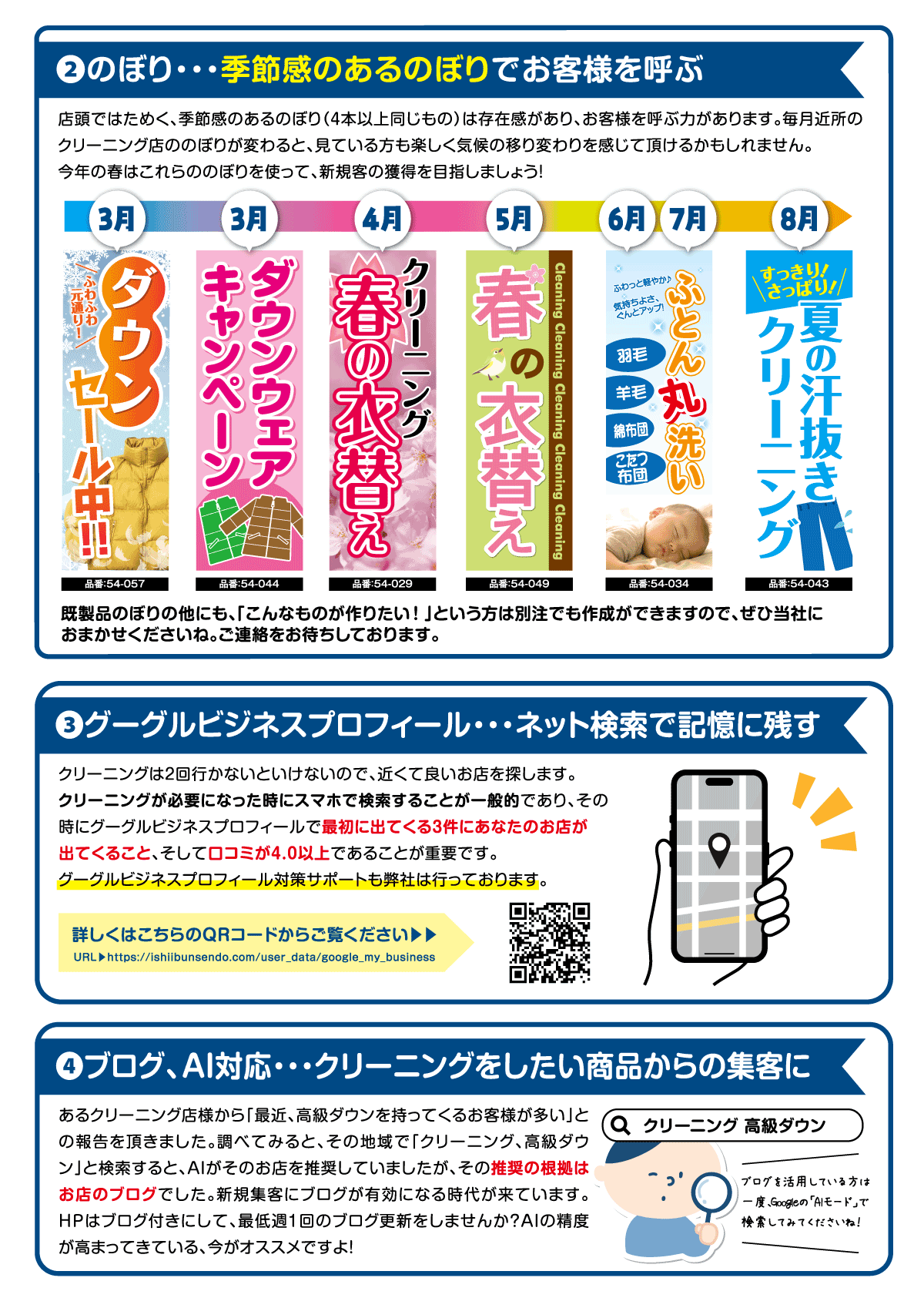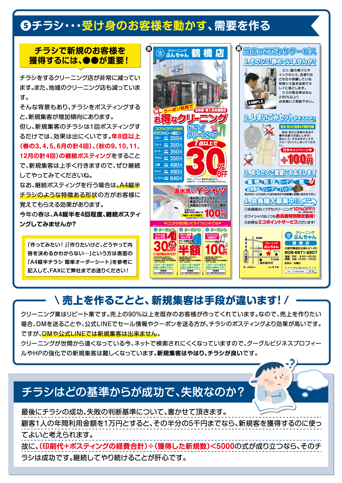 ぶんちゃん販促レターでは、今すぐクリーニング店さまが出来る販促情報をお届けしています。販促計画の作成にお役に立てましたら幸いです。
