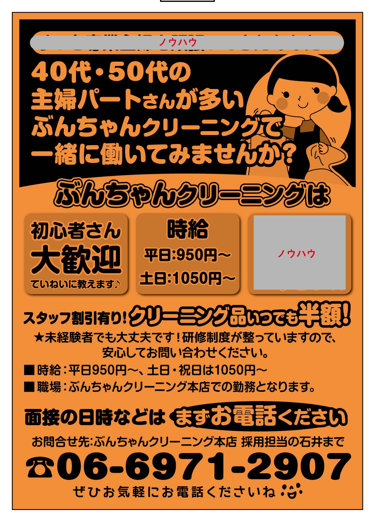 ただし、求人だけのチラシでははずすこともあるので、裏面はクリーニングのクーポンチラシにして、リスクヘッジもしています。