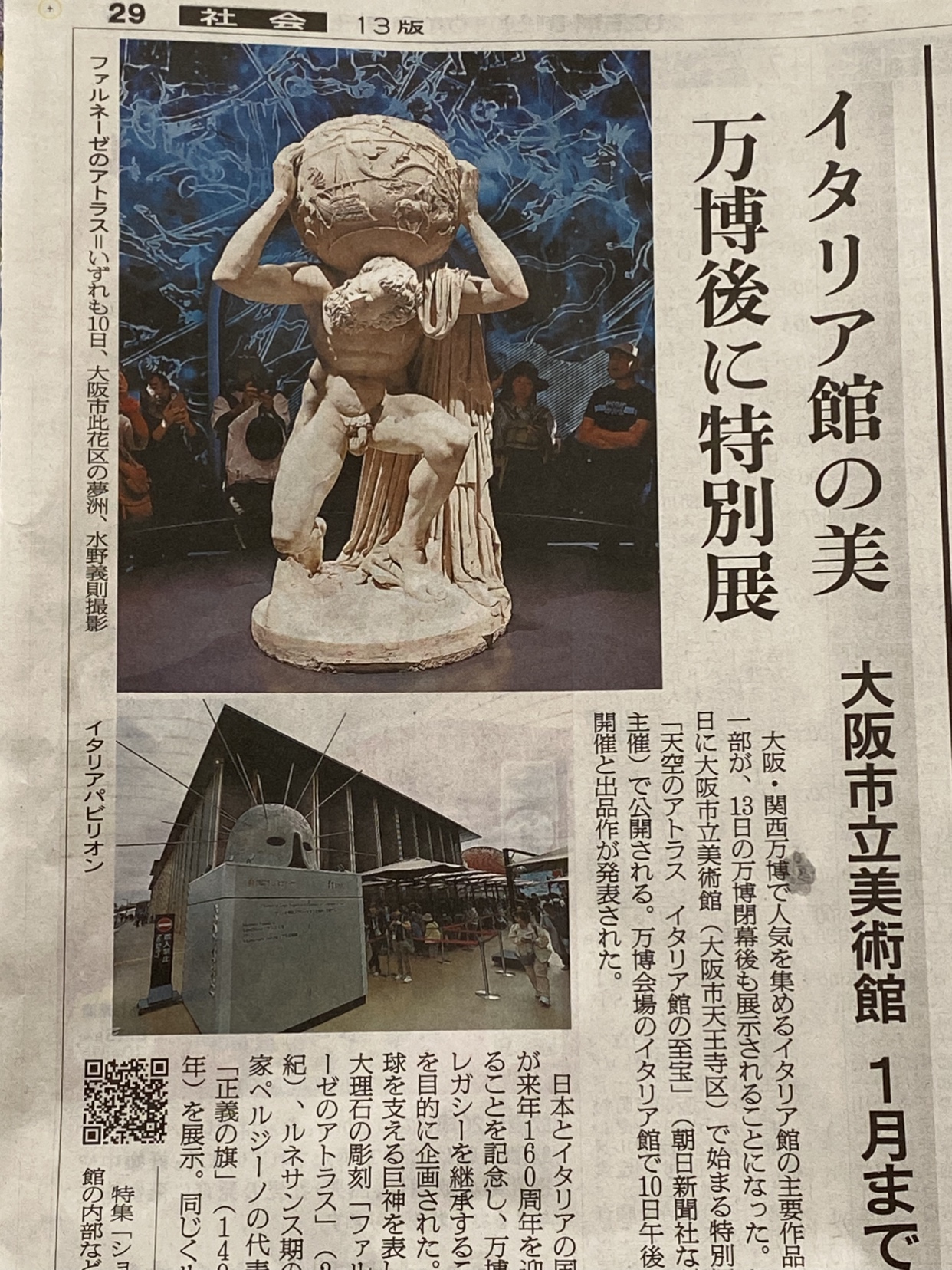 なんとイタリア館で展示されていた美術品が大阪市立美術館で展示されるとのこと!!