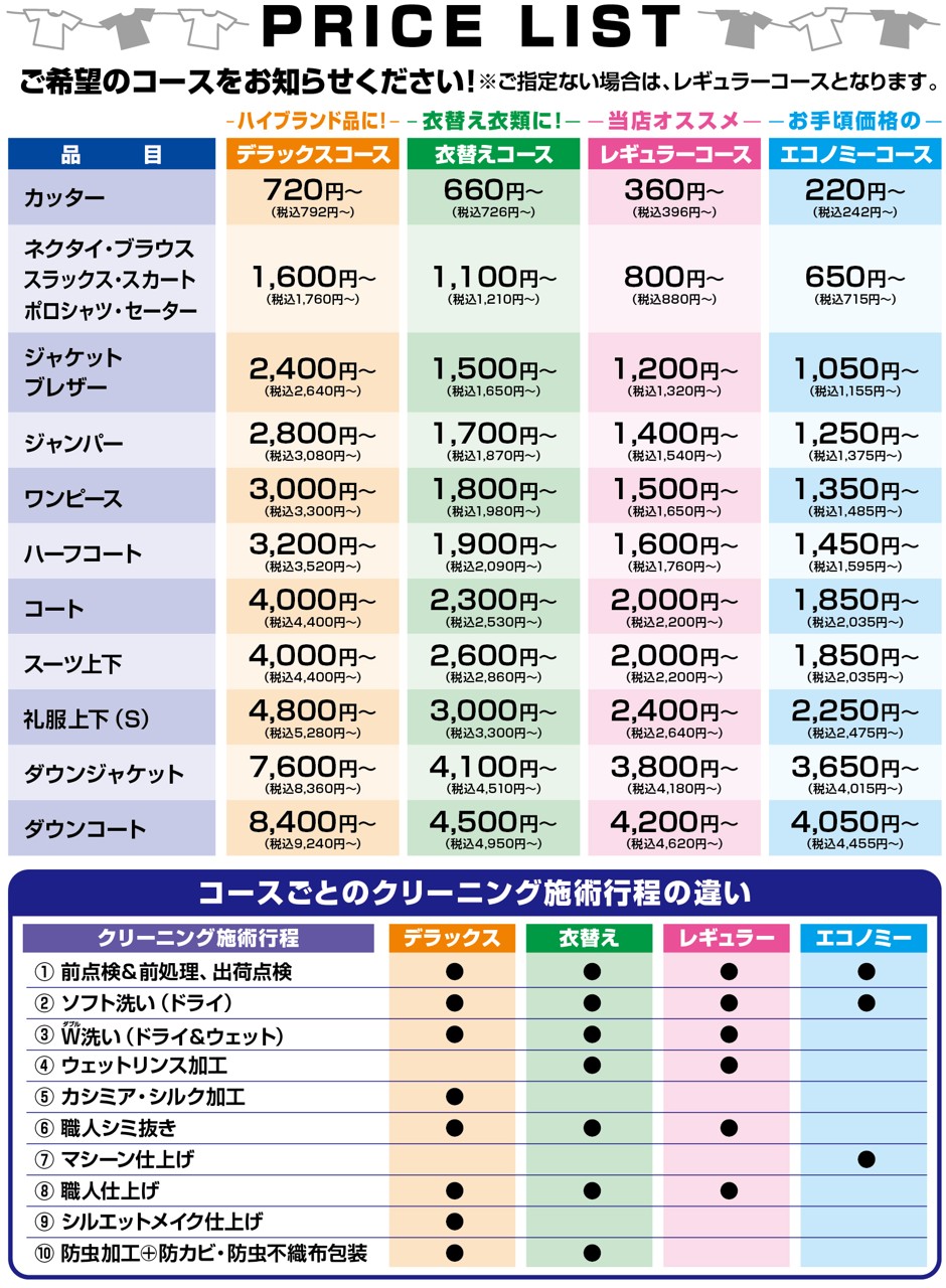 そんな私の考え方を取り入れた料金表をクリーニングみつやさんに採用して頂いていますが、今回のバージョンアップでさらに良いものになりましたので、シェアします。