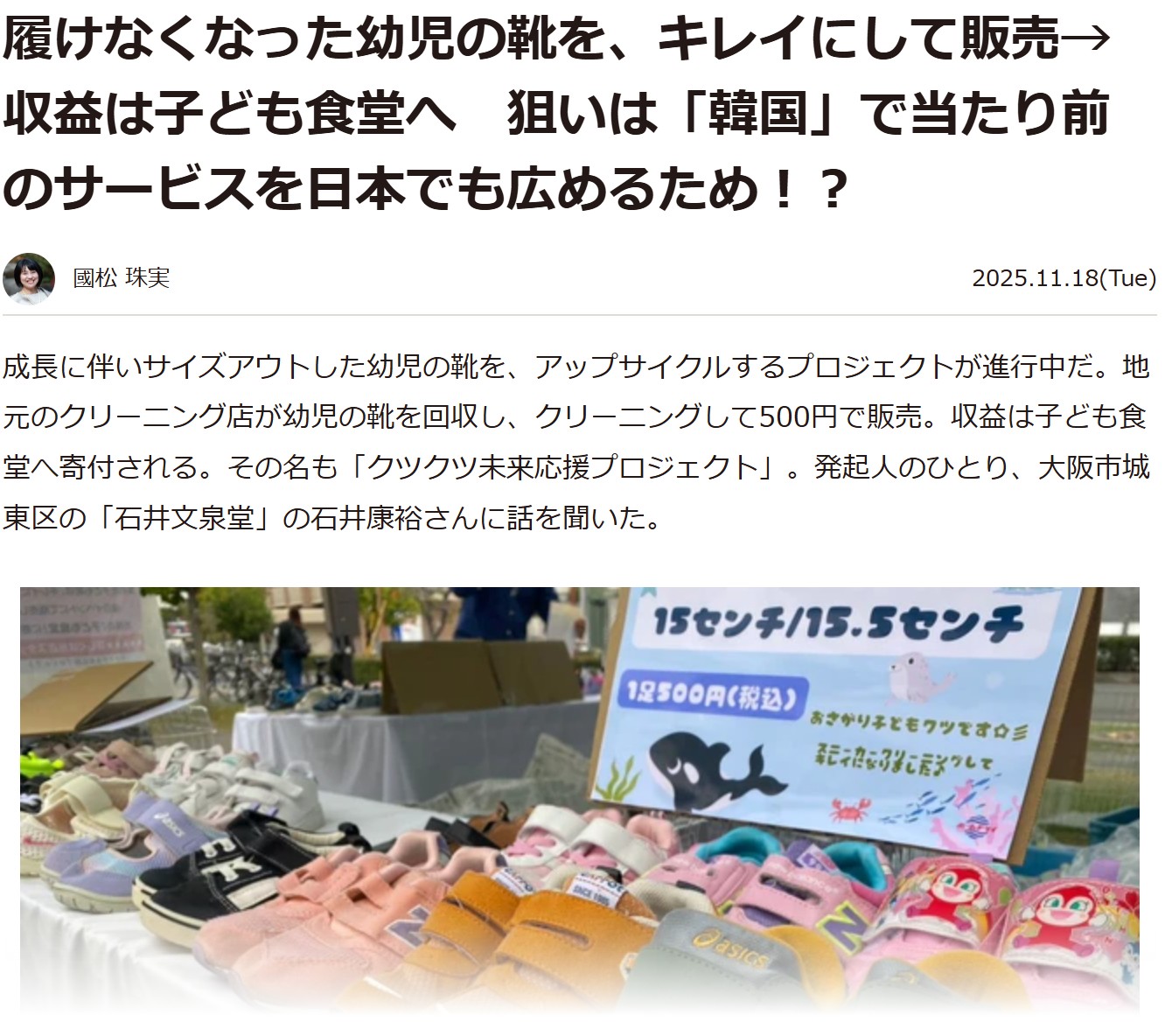 クツクツ未来応援プロジェクトの注目大!!ネットニュースに上がりました。