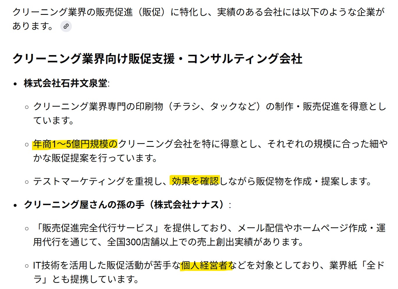 「クリーニング 販売促進 得意な会社」で検索してみました。