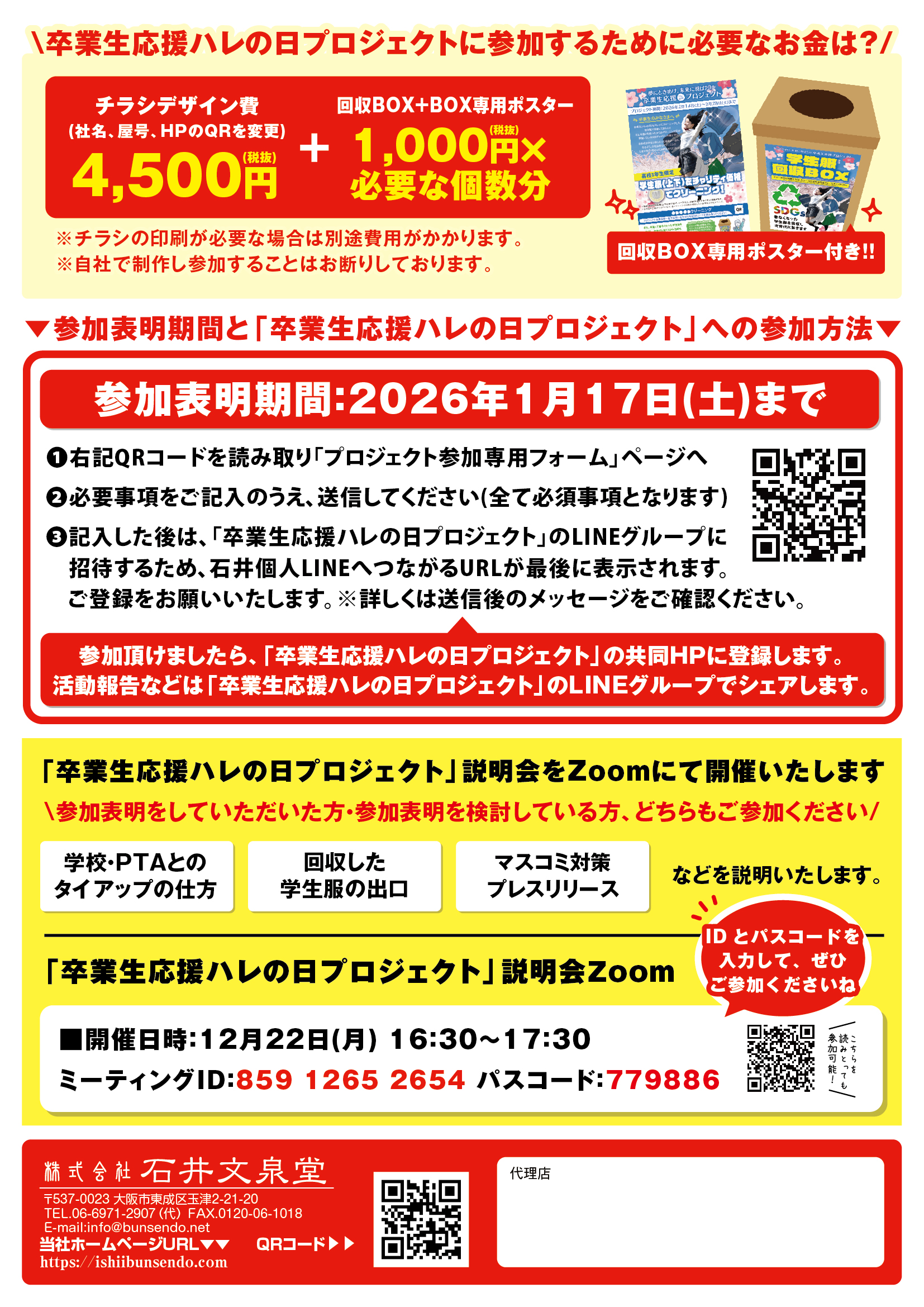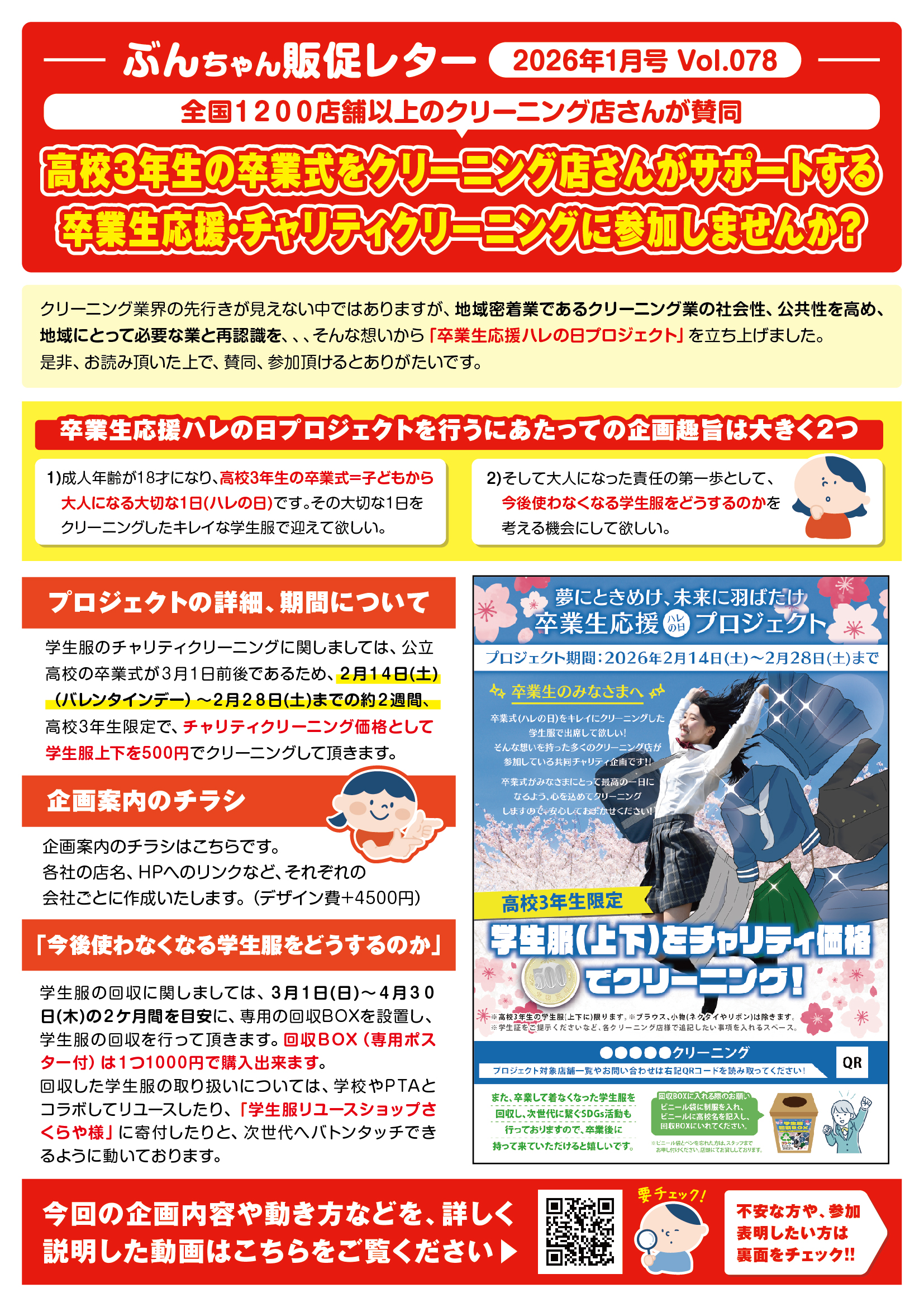 全国1200店舗以上のクリーニング店様に賛同頂いた「卒業生応援ハレの日プロジェクト」ですが、そのことを販促レターでまとめました。