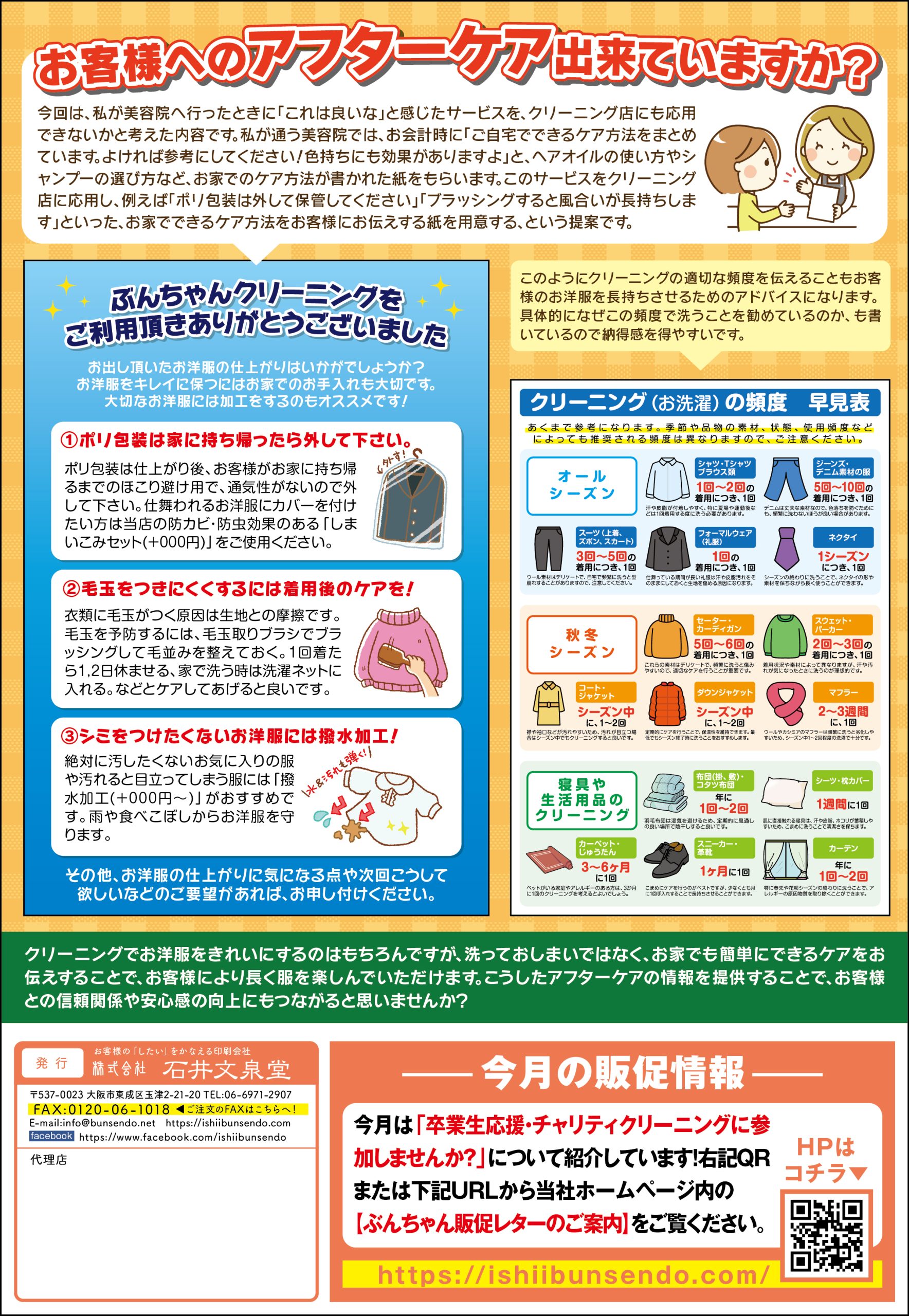 ぶんちゃん新聞1月号の裏面は「お客様へのアフターケアをお伝えするチラシ」の紹介になっています。