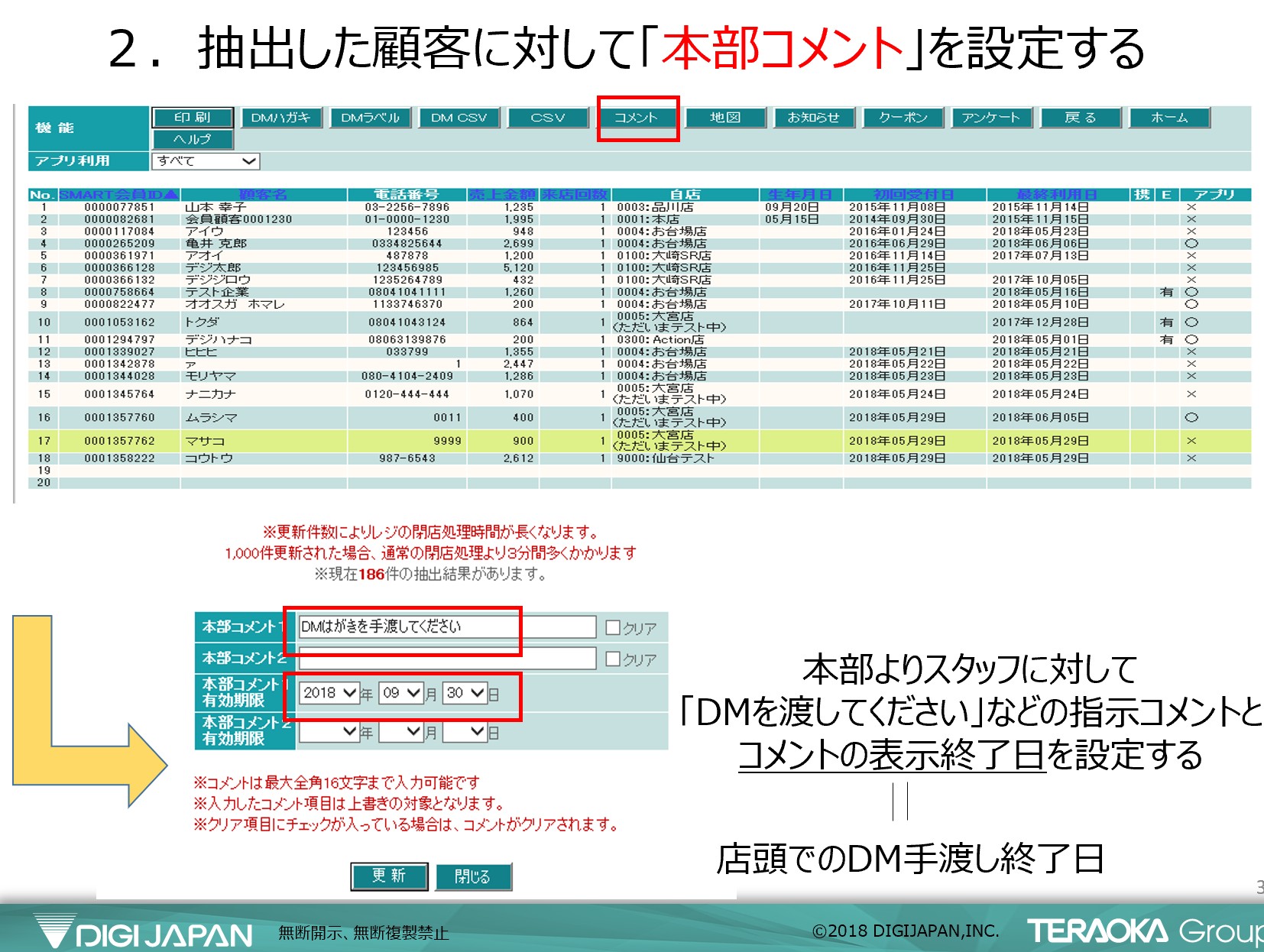 簡単にいうと、レジの機能にDMの手渡し期間にお客様が来店されたら「DMを渡して下さい」とレジが教えてくれる機能があるってご存知ですか?