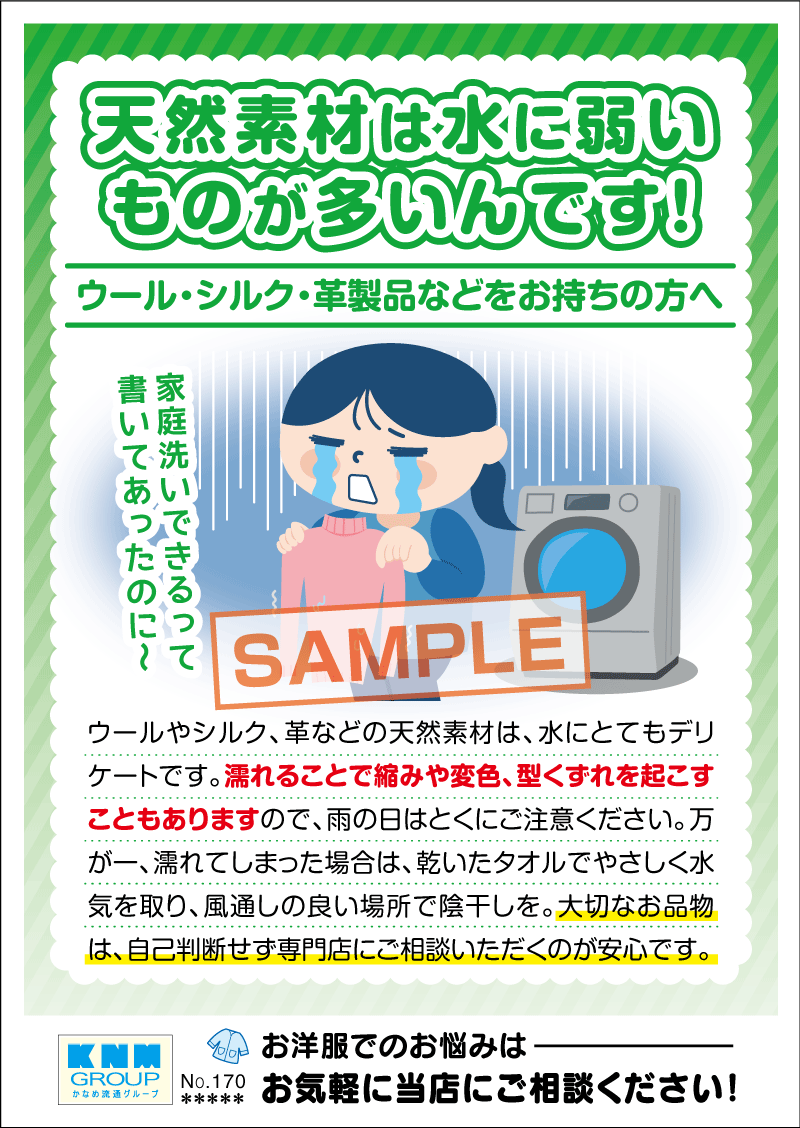 そんな想いをもつクリーニング店様をサポートするために、機材商同友会@かなめグループさんが作られている(当社が作成のサポートをしている)「肩貼りニュースレター」というクリーニングのミニチラシですが、今回も、「洗うこと」「仕上げること」「クリーニングのこと」をテーマに作っています。
