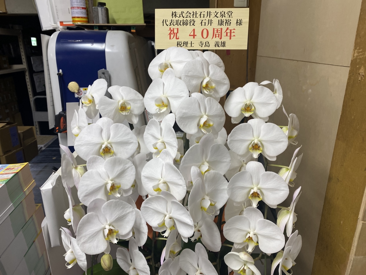 税理士の先生から、コチョウランが送られてきて、「え、何々!!」ってびっくりしたのですが、あ、うちの創業って2月だったんですね。