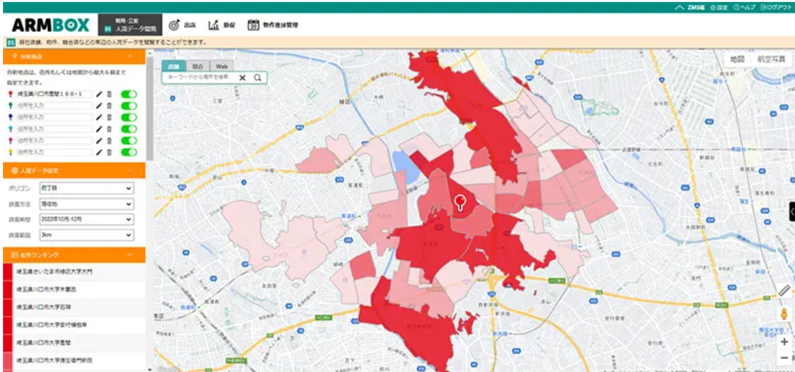 例えばライバル店のお客様は、どのエリアから何人来ているか?なんてこともわかります。