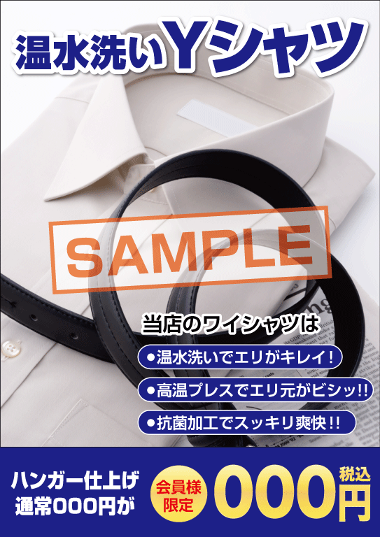 ワイシャツを温水で洗っていること、エリがビシっとすることが伝われば、お客様の目線が変わるかもしれません。